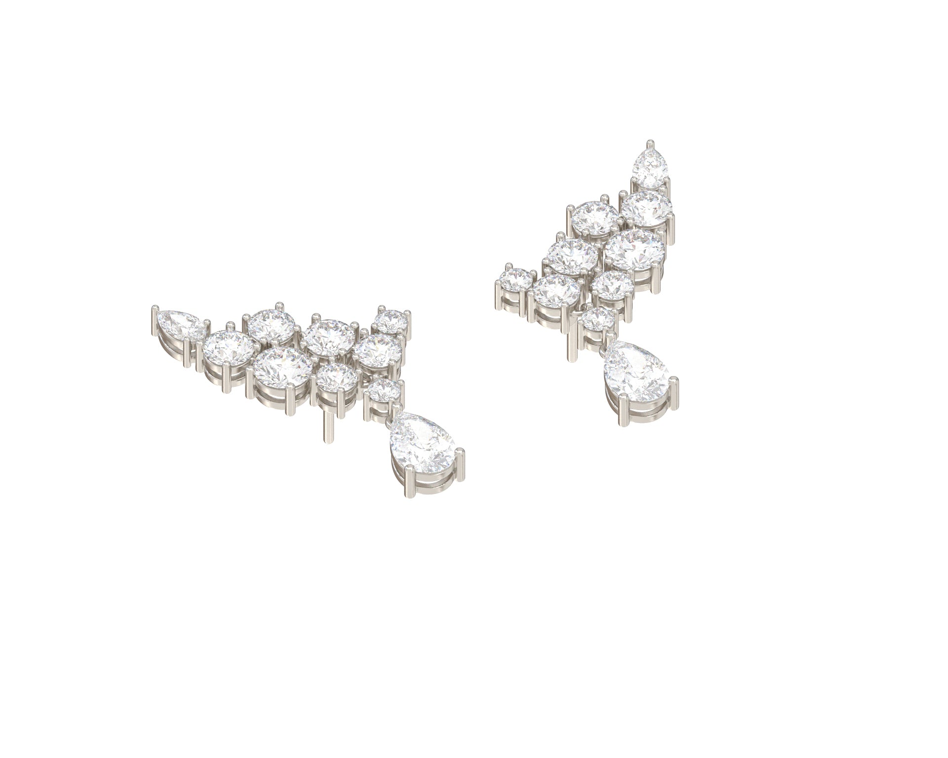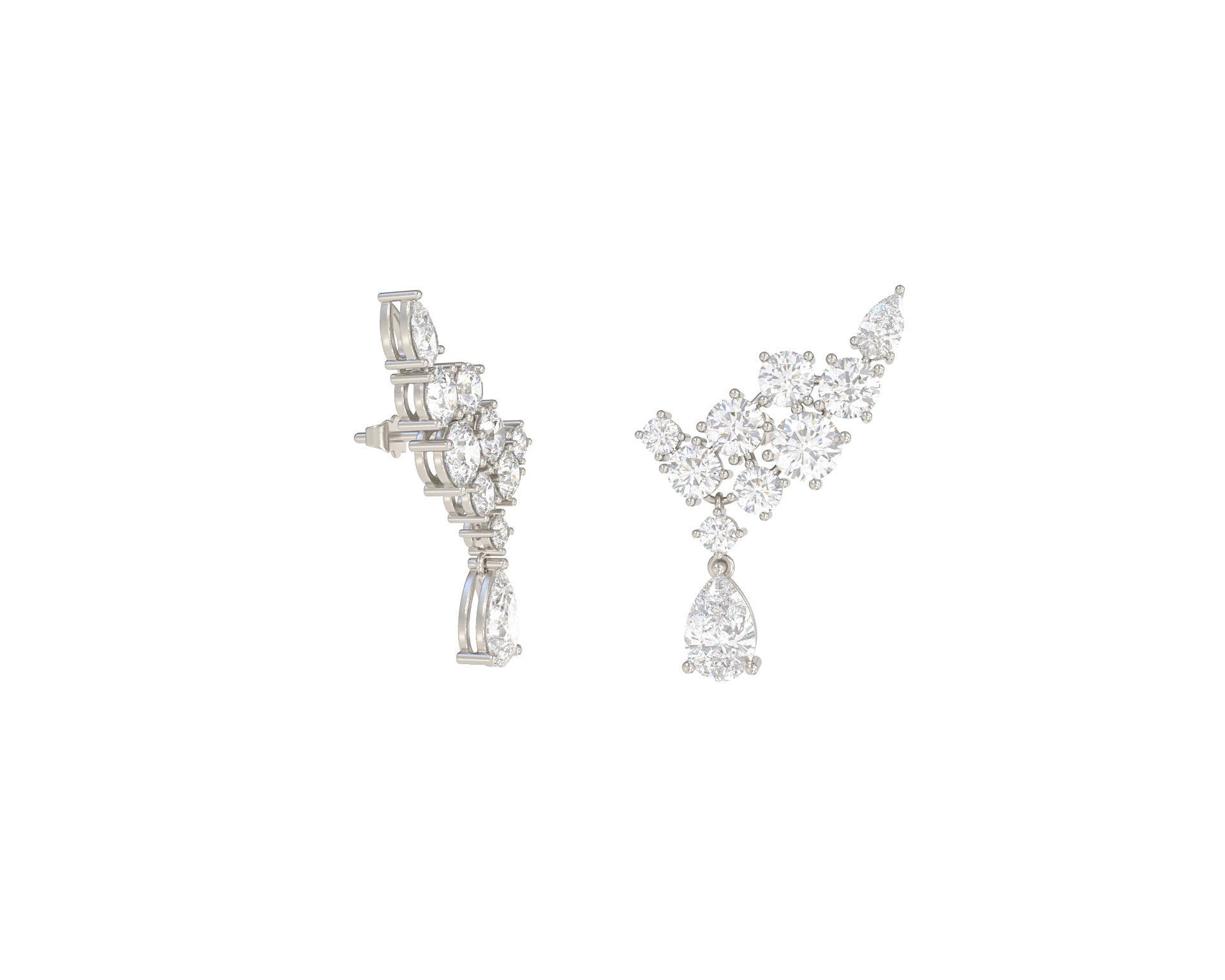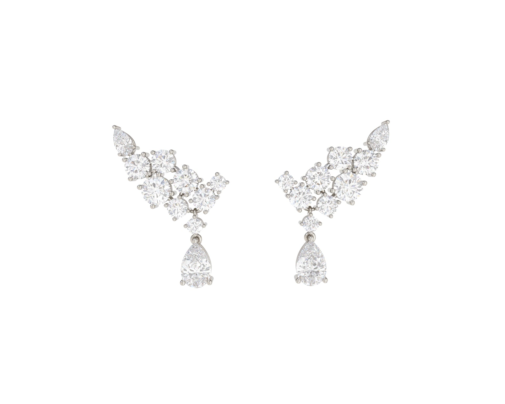 A sophisticated take on the climber earring featuring a shimmering cluster punctuated by a pear-shaped diamond. Arranged in a prong setting, the gemstones gracefully trace the shape of the ear to create an alluring impression for any special occasion.