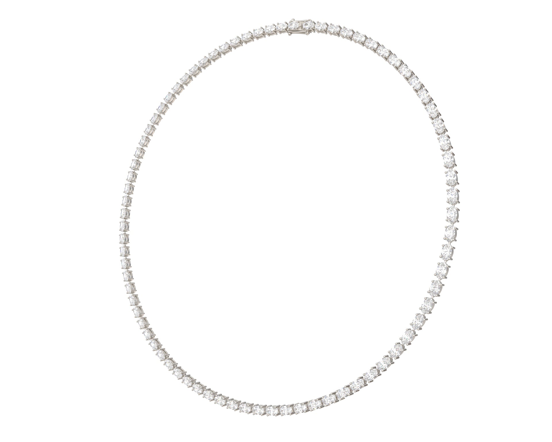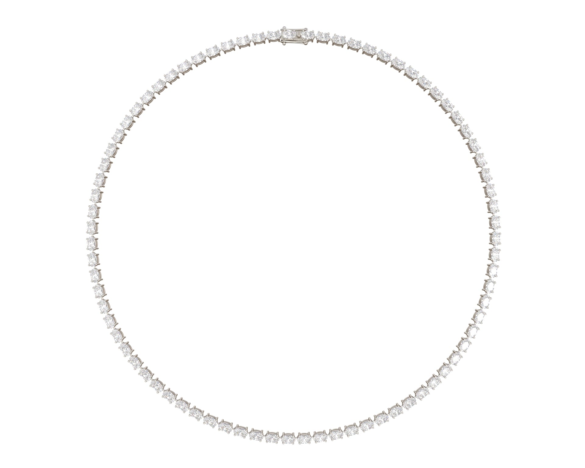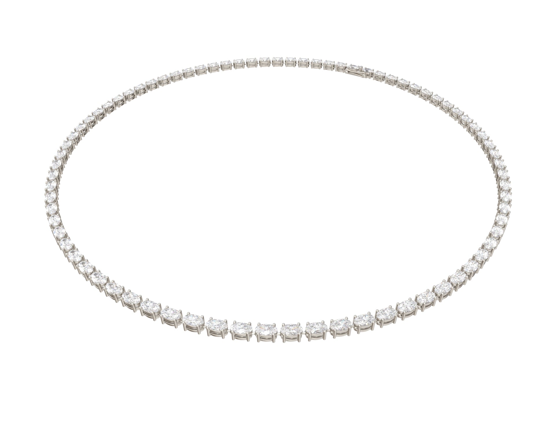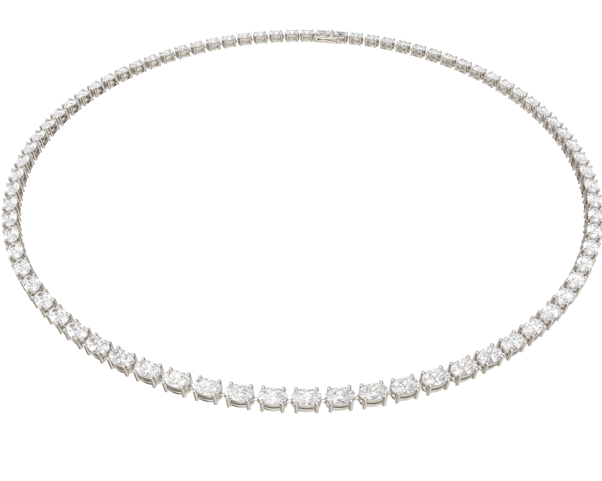 An expression of beauty and romance, the oval diamond tennis necklace reimagines the classic to create a timeless look. The design features a seamless strand of glistening gemstones that lay flawlessly along the neckline set to radiate light with moment.